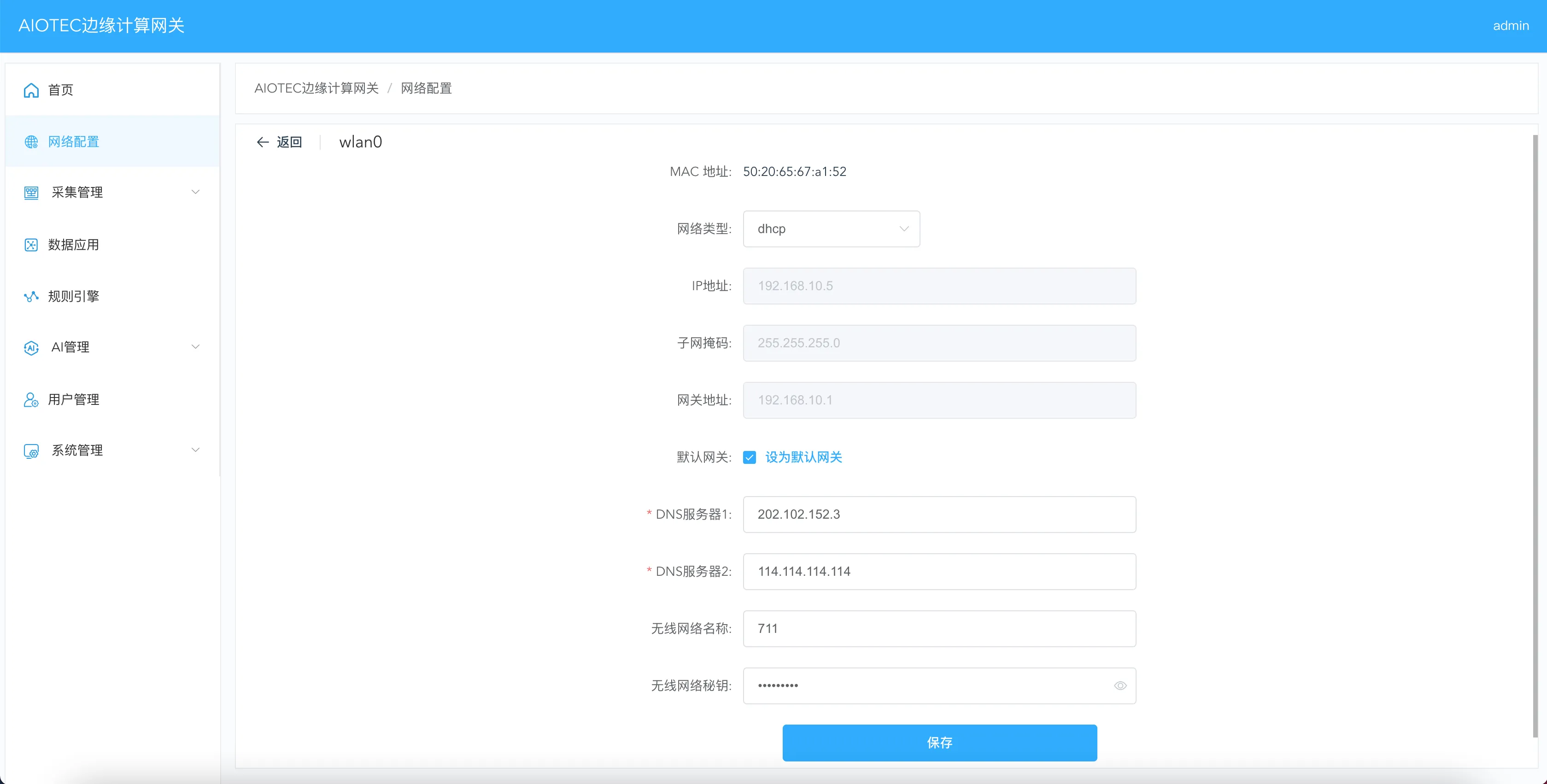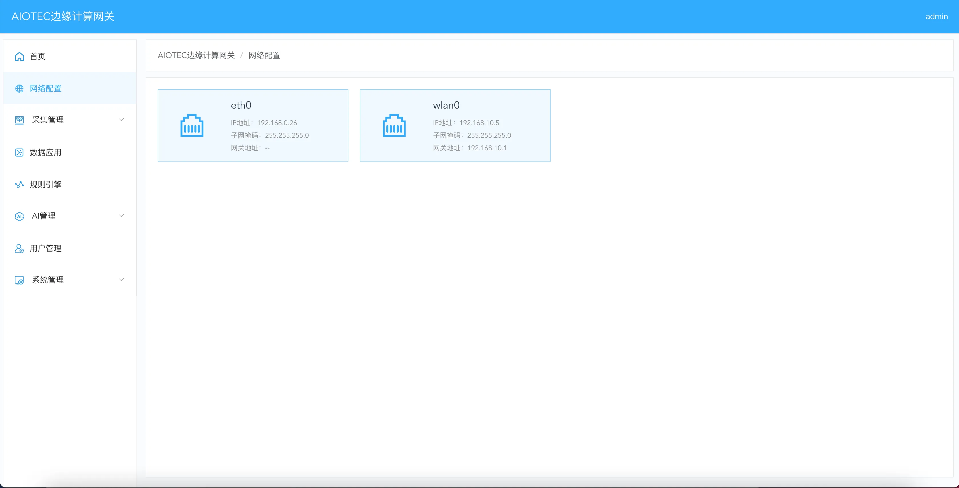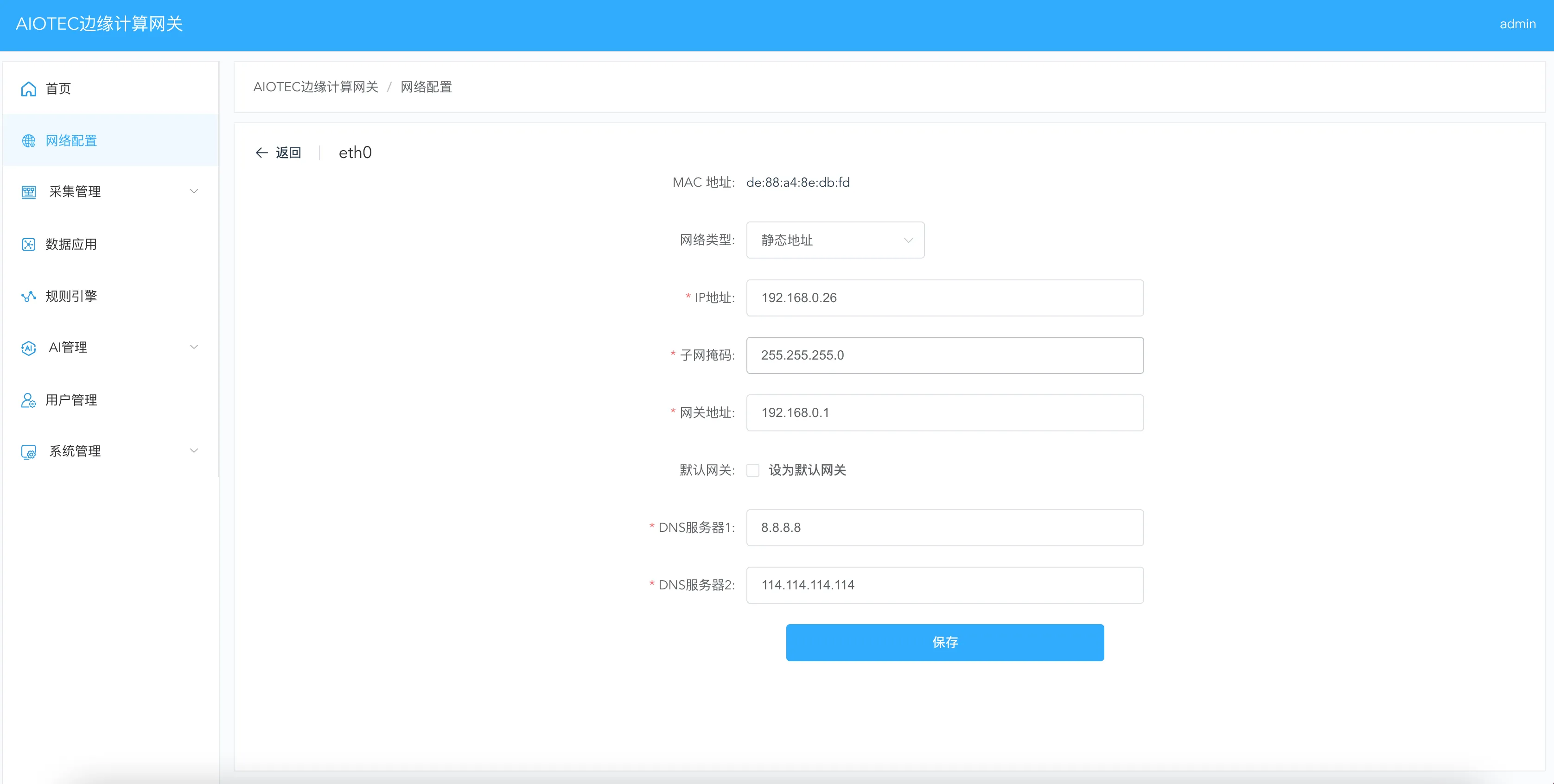 操作指引: 点击某个接口,如eth0,设置网络类型可选择静态地址及动态地址。